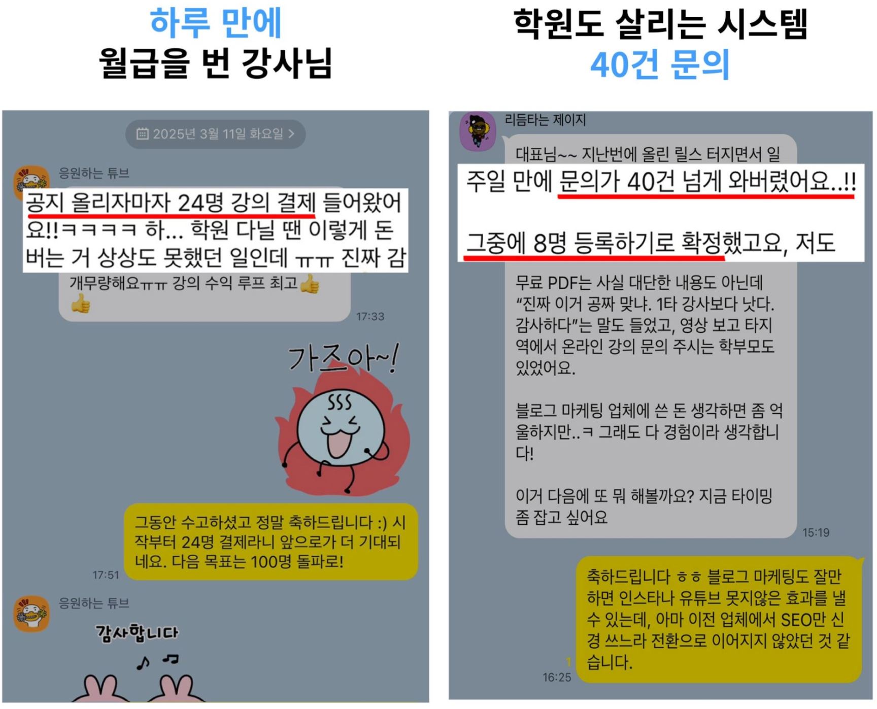 쉽게 말해, 당신이 직접 말하지 않아도 당신의 콘텐츠가 학생과 학부모를 설득하고, 결제까지 유도하는 시스템인 것입니다.